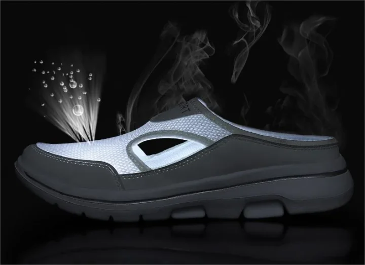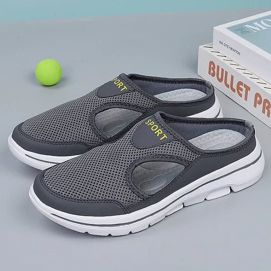 Herren-Halbschuhe mit Mesh-Zehenpartie sind ein Schuhwerk für die Freizeit. Sie verfügen typischerweise über ein atmungsaktives Mesh-Obermaterial, das für Belüftung sorgt und die Füße kühl und trocken hält. Die Zehenpartie ist frei und ermöglicht so bequemes An- und Ausziehen. Das Halbschuh-Design bedeutet, dass der Schuh nicht den gesamten Fuß bedeckt, sondern die Ferse frei bleibt. Diese Hausschuhe können außerdem eine flexible und strapazierfähige Sohle für zusätzlichen Komfort und Halt haben.