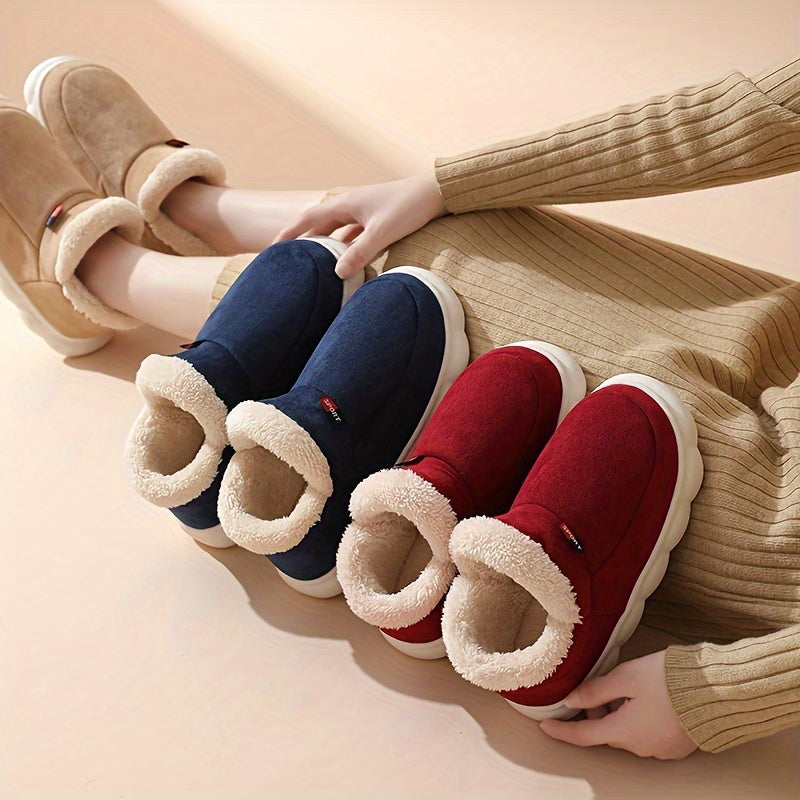Höst- och vintertofflor med varmt plyschfoder, unisexfärgade slip-on-mönster