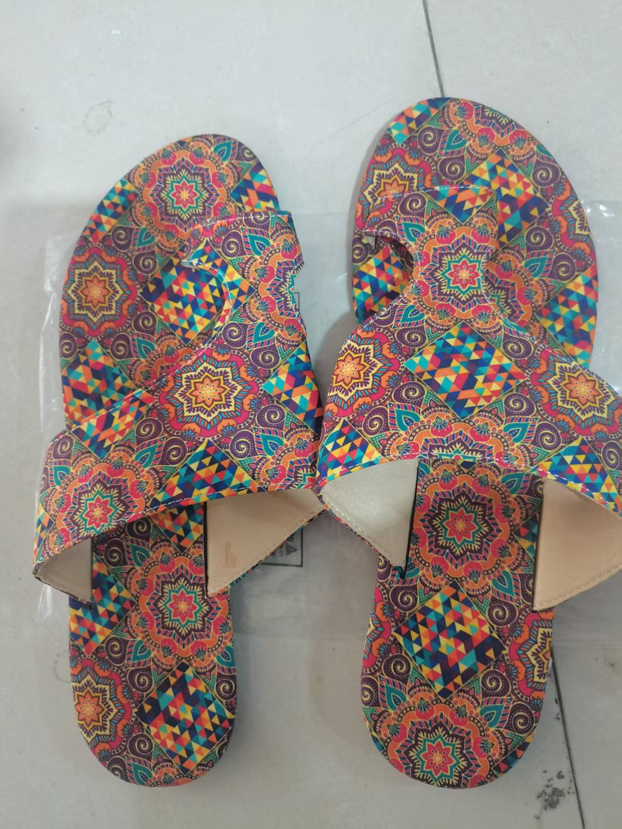 LIVLIG BOHEMISK STIL: Dessa platta sandaler har ett slående blommönster i livfulla färger som ger en glad och livfull touch till vilken sommaroutfit som helst. Det invecklade trycket är perfekt för festivaler, strandresor eller avslappnade dagar.