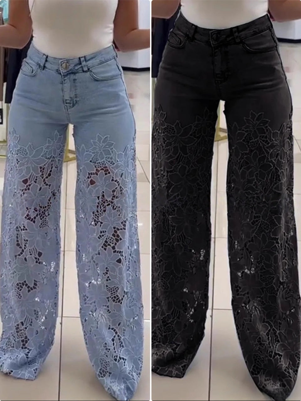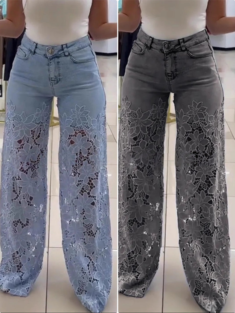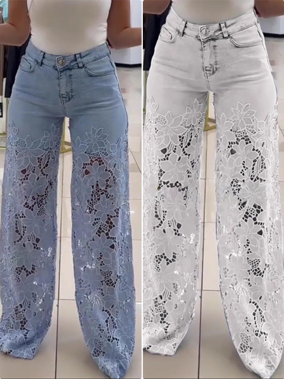Leveransomfattning: 1 x moderiktiga jeans med spetsmönster