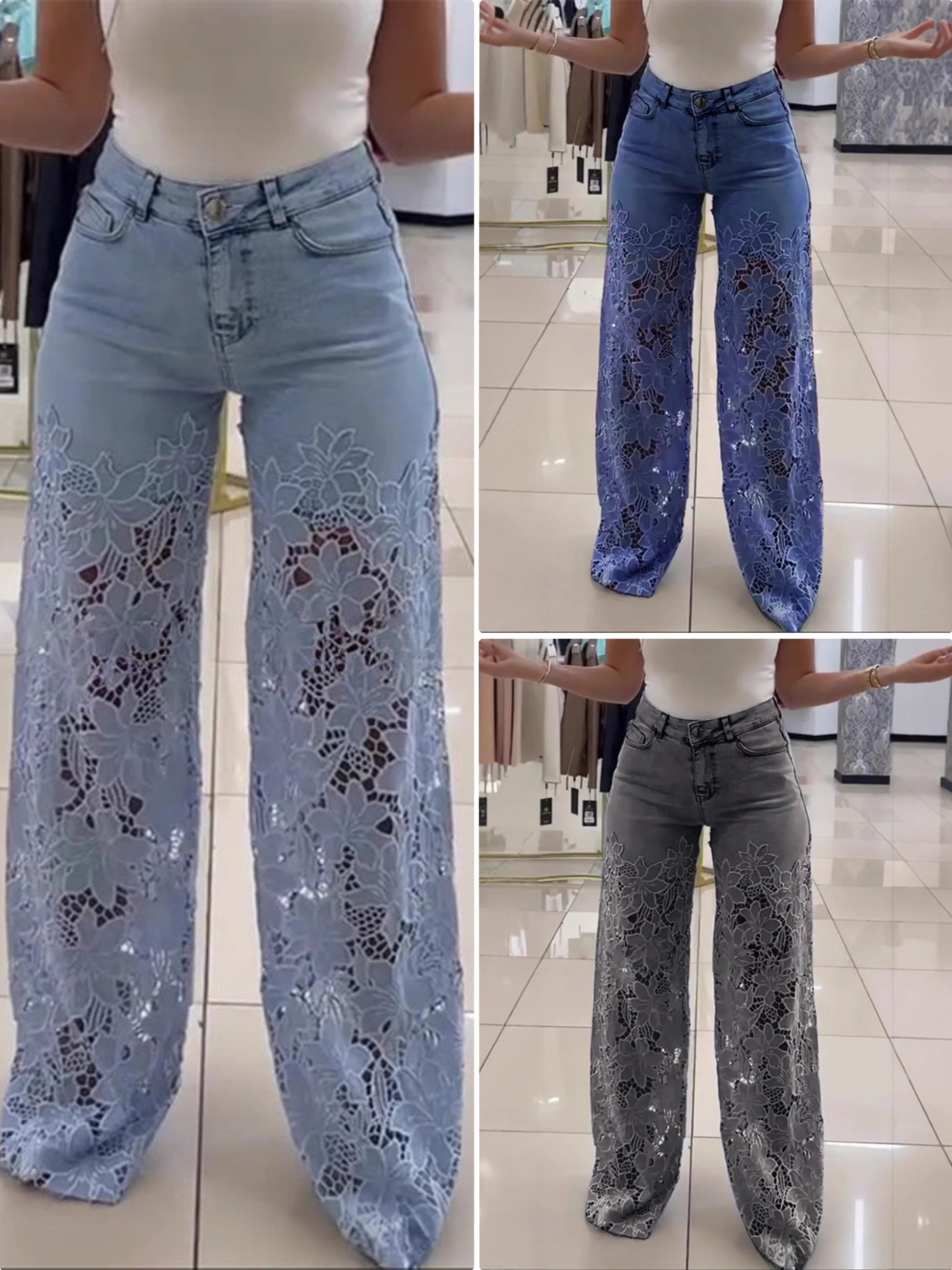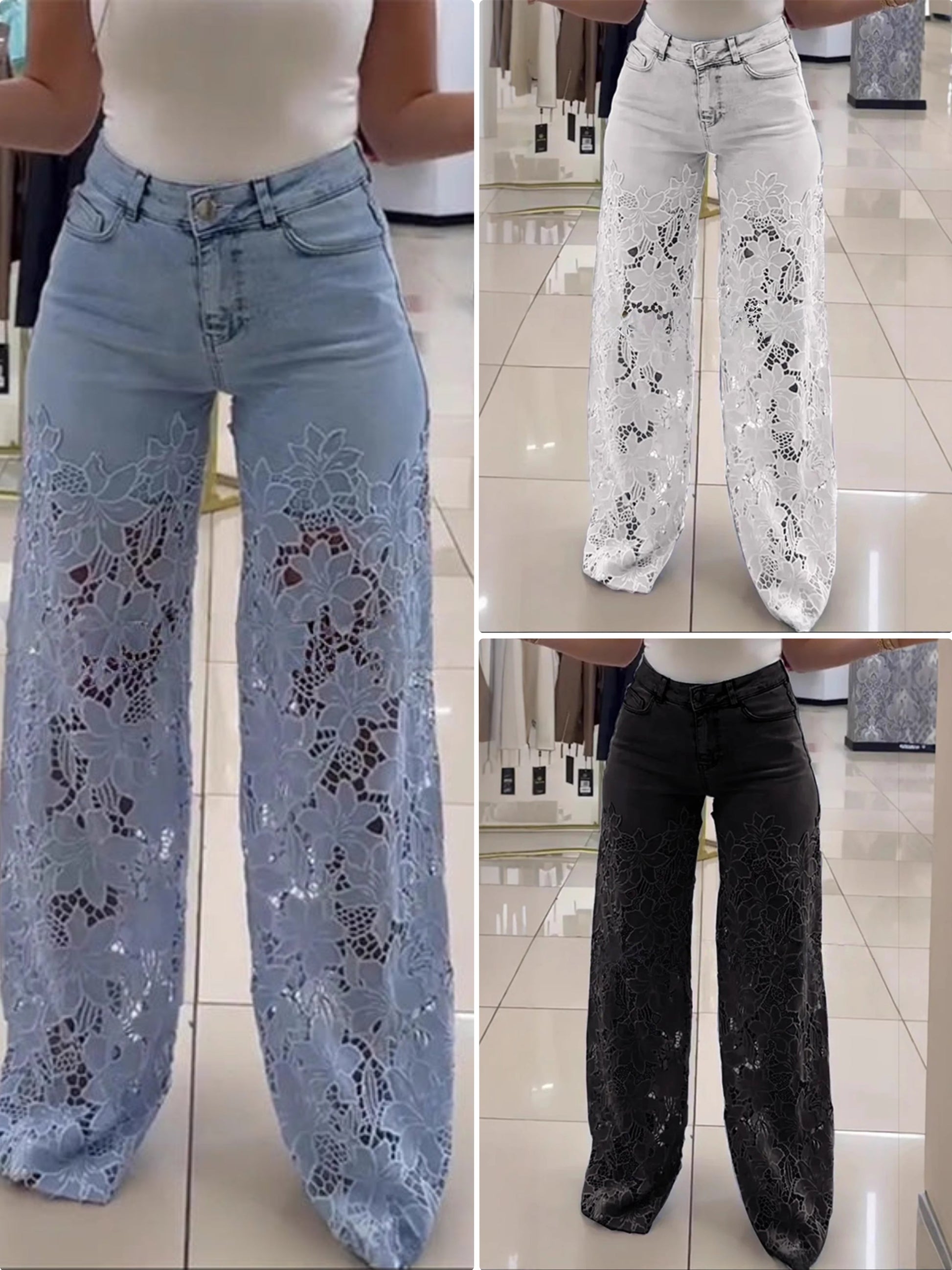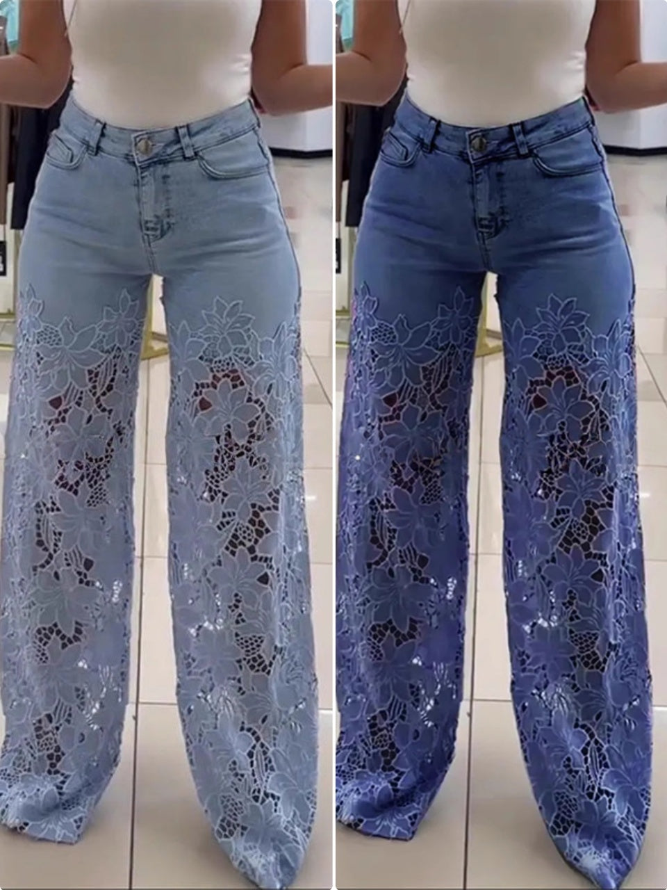 Leveransomfattning: 1 x moderiktiga jeans med spetsmönster