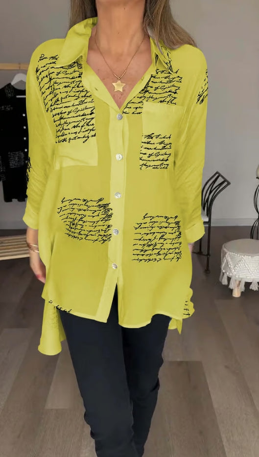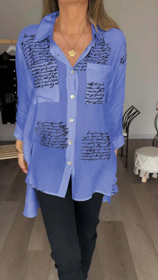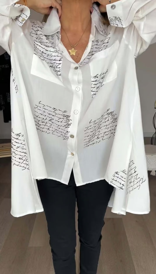 Den unika bokstavstryckdesignen ger en touch av individualitet och trendmedvetenhet, vilket gör den till ett iögonfallande plagg i vilken ensemble som helst. Slagkragen och den skräddarsydda skärningen utstrålar elegans, medan den lösa passformen säkerställer obegränsad rörelsefrihet och en smickrande silhuett.
