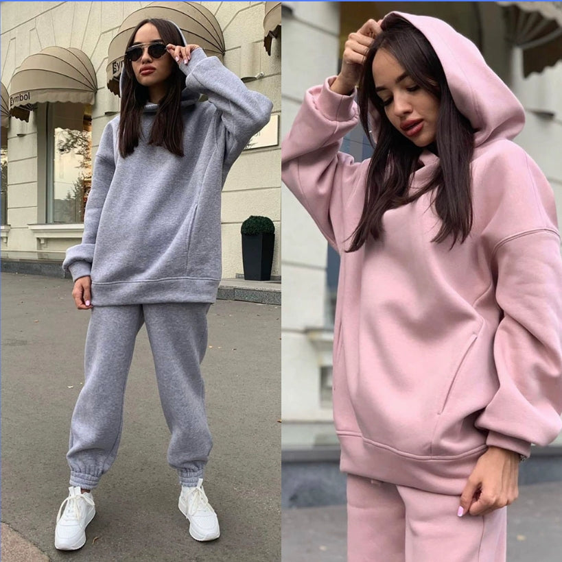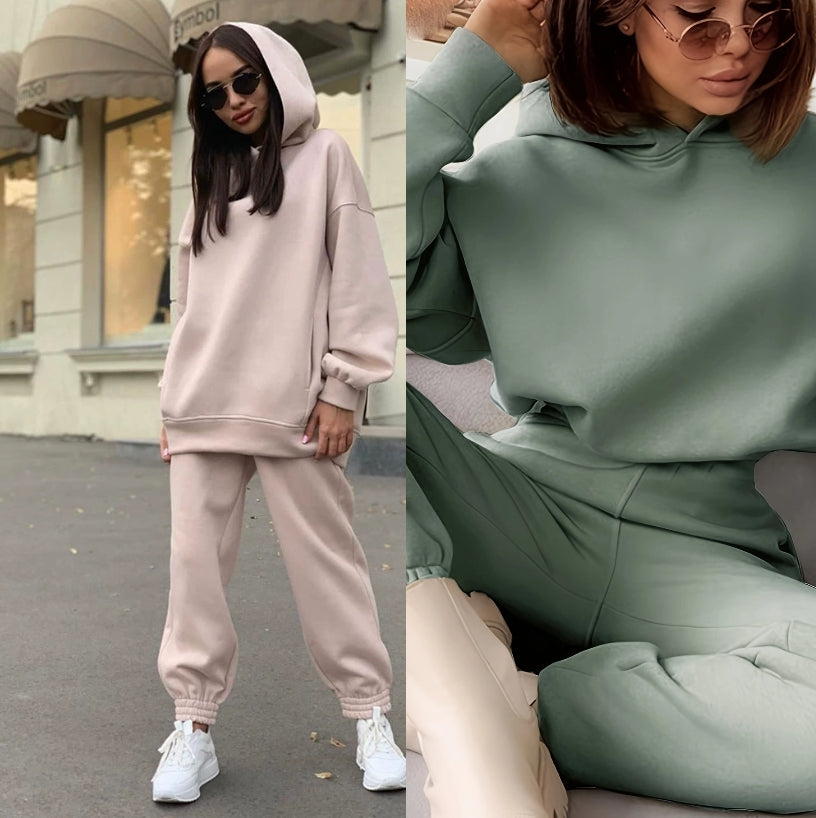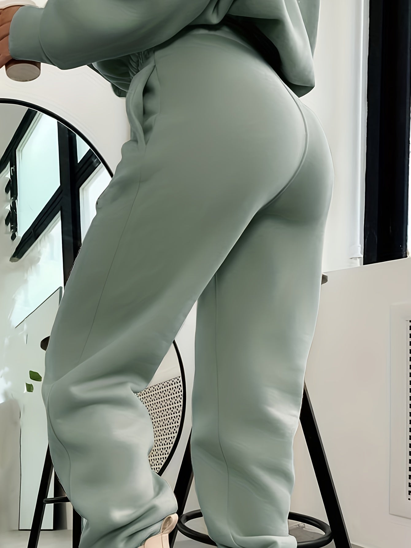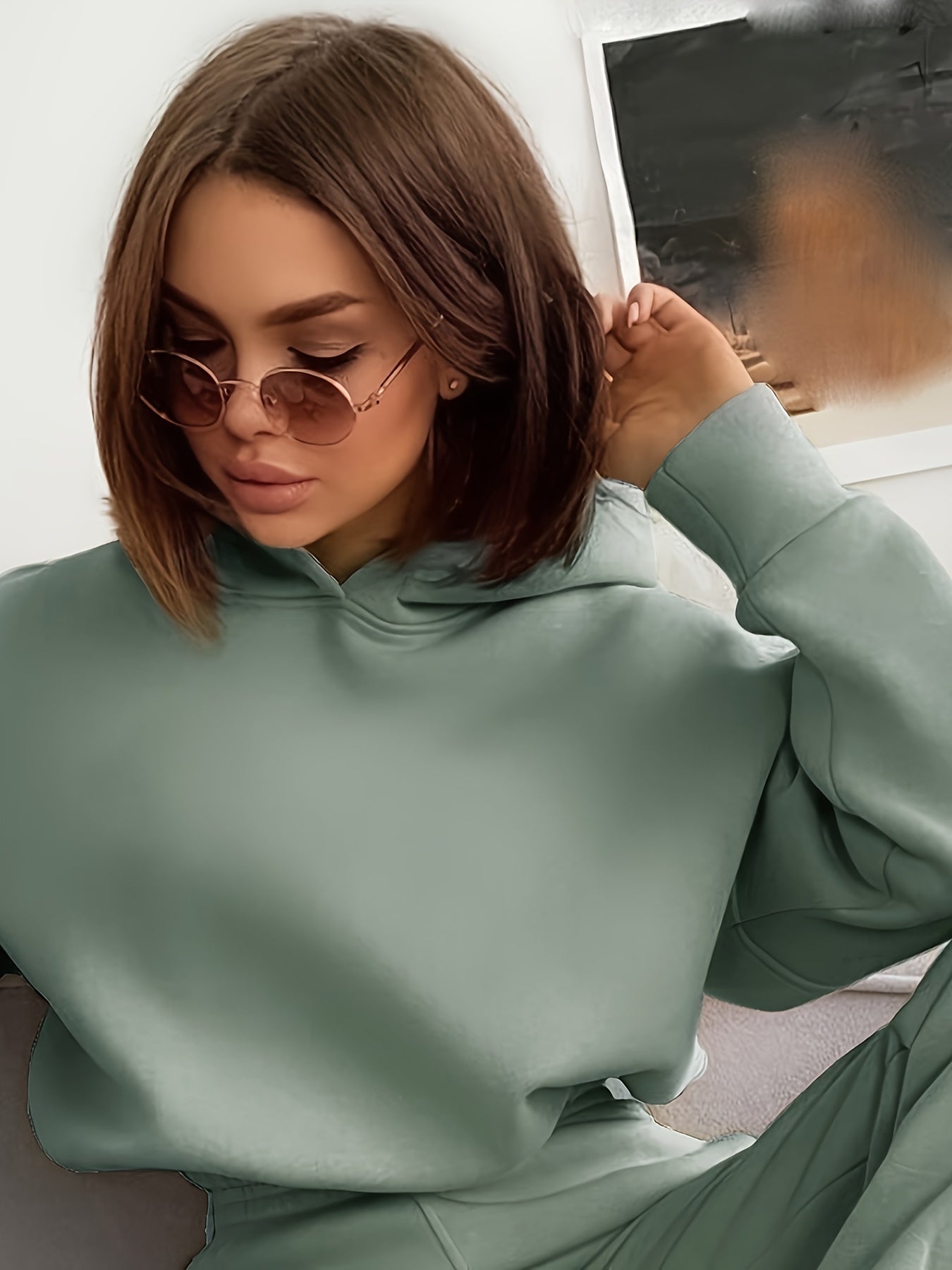 2025 Nytt elegant set med enfärgad huvtröja och byxor för kvinnor