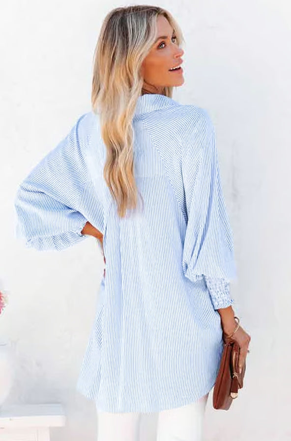 Medellång skjorta med randiga slag och överdimensionerade nedsänkta ärmar