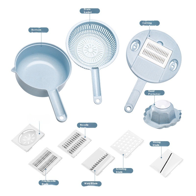 Tillverkad av miljövänlig vetehalm och slitstarkt PP-material, känns den lätt men ändå förvånansvärt robust. 💪 Bladen i rostfritt stål är vassa och utbytbara, så att du enkelt kan växla mellan att skiva, riva, skala och skiva – allt med ett bekvämt verktyg! ✨