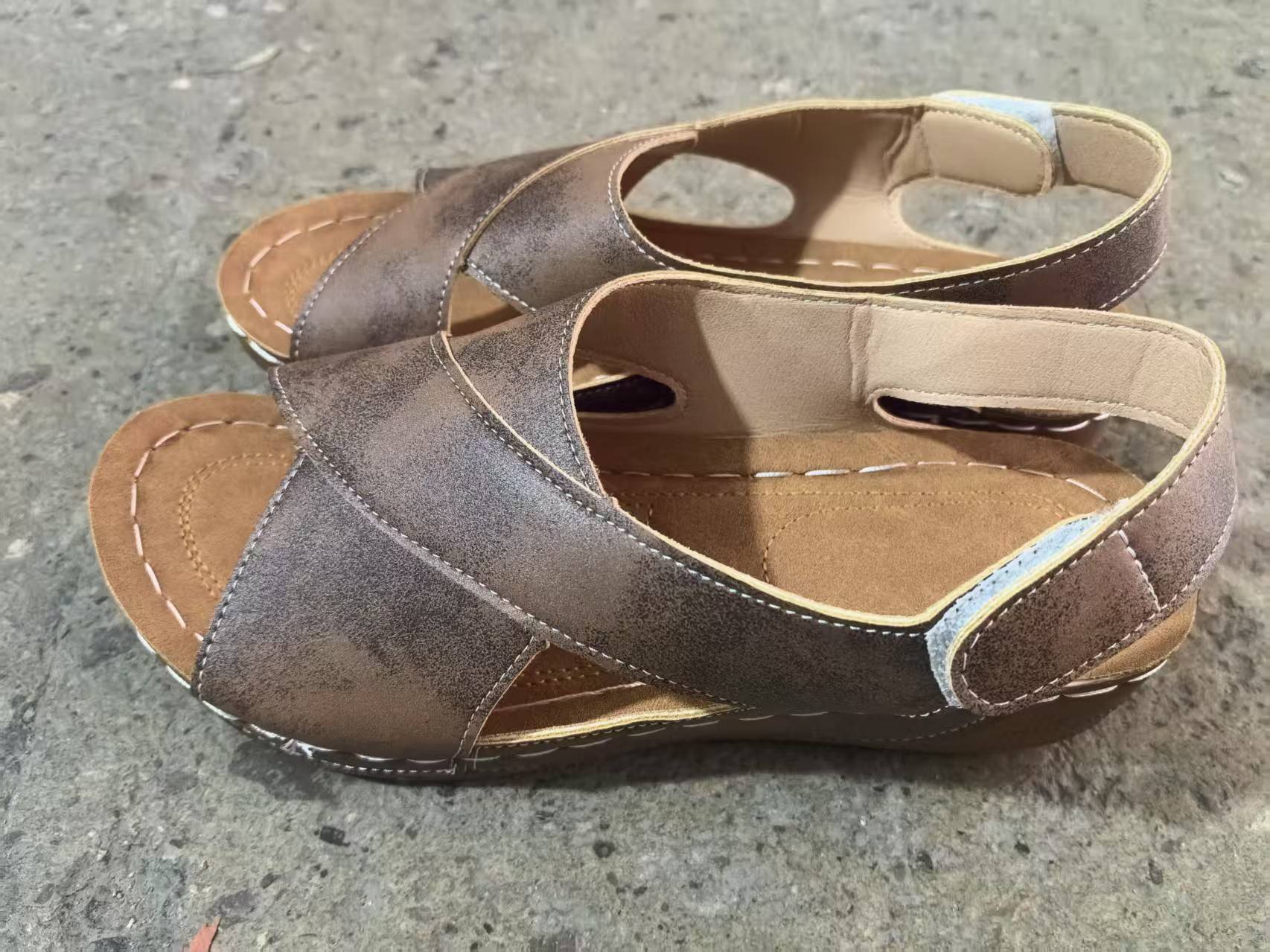 Nya enfärgade sommarsandaler med kil i vintagestil för kvinnor