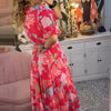 2025 Ny Plus Size V-ringad Elastisk Blommig Klänning