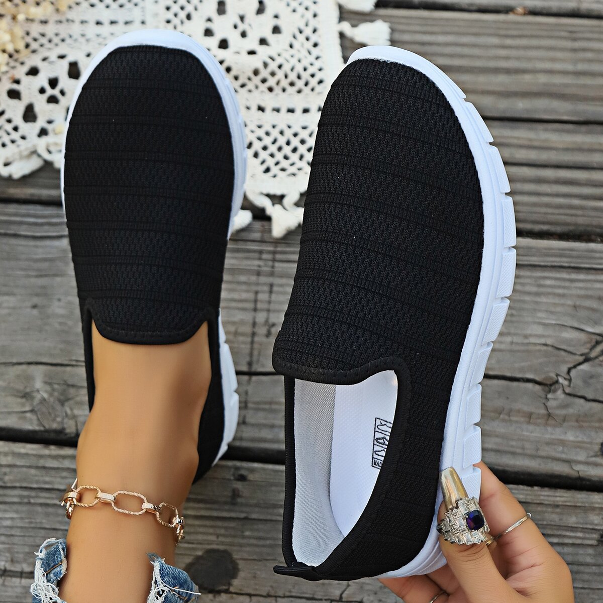 Dams andningsbara stickade slip-on sneakers - avslappnade rund tå i mesh med gummisula, för vardags- och sportkläder, fritidskläder|andningsbar meshdesign|gummidetaljer 1