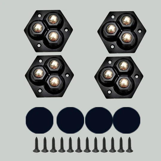 1 set (4 stycken) à 360° roterbara tre bollar, stötdÀmpande klistermÀrken, plus 12 skruvar (om du inte vill anvÀnda klistermÀrken kan du Àven anvÀnda skruvar för fixering)