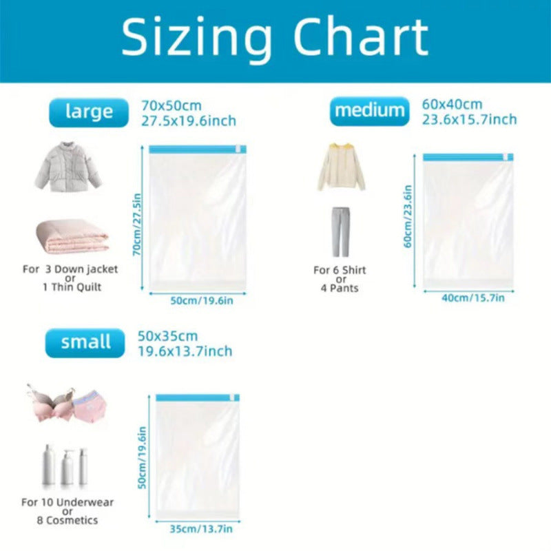 Einfache Handhabung: Kleidung einfüllen, Beutel verschließen und zusammenrollen – kein Strom oder Pumpe erforderlich. Ideal für Reisen, Umzüge oder zur Aufbewahrung zu Hause.