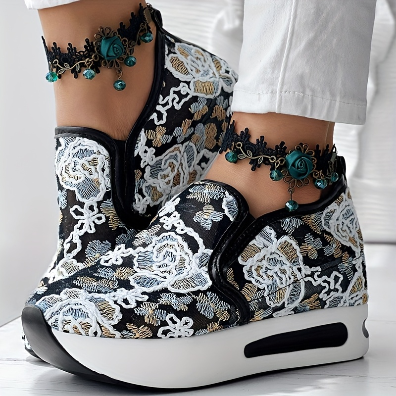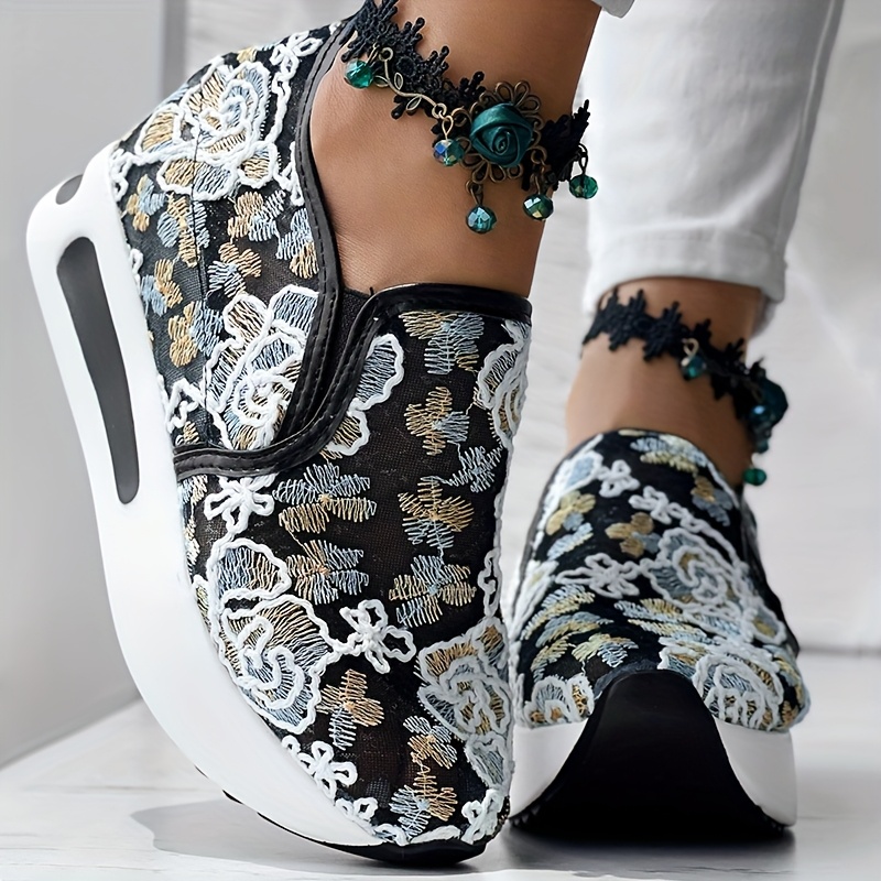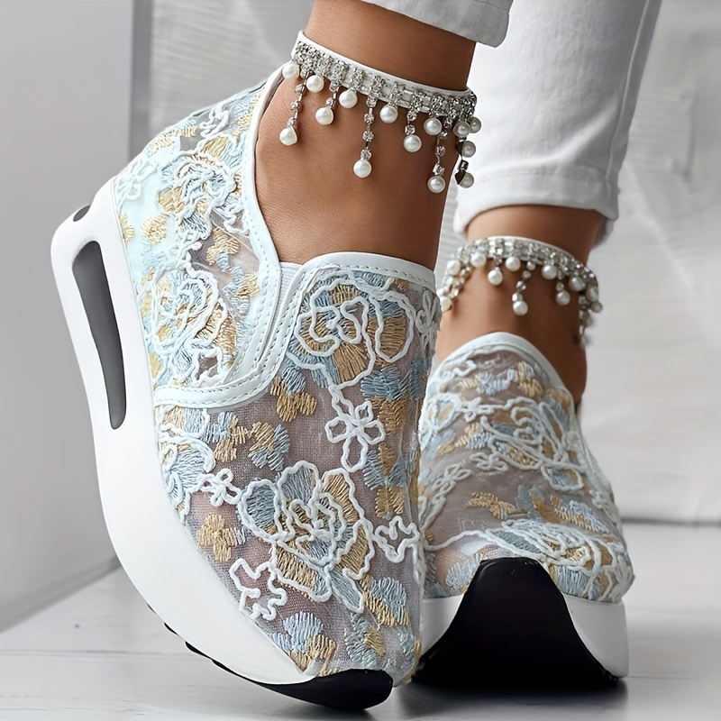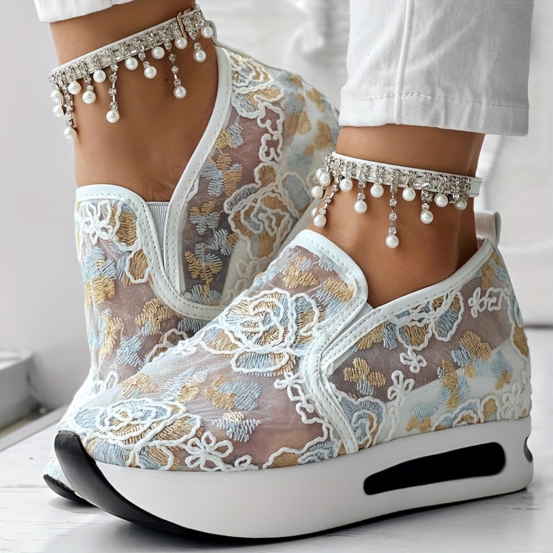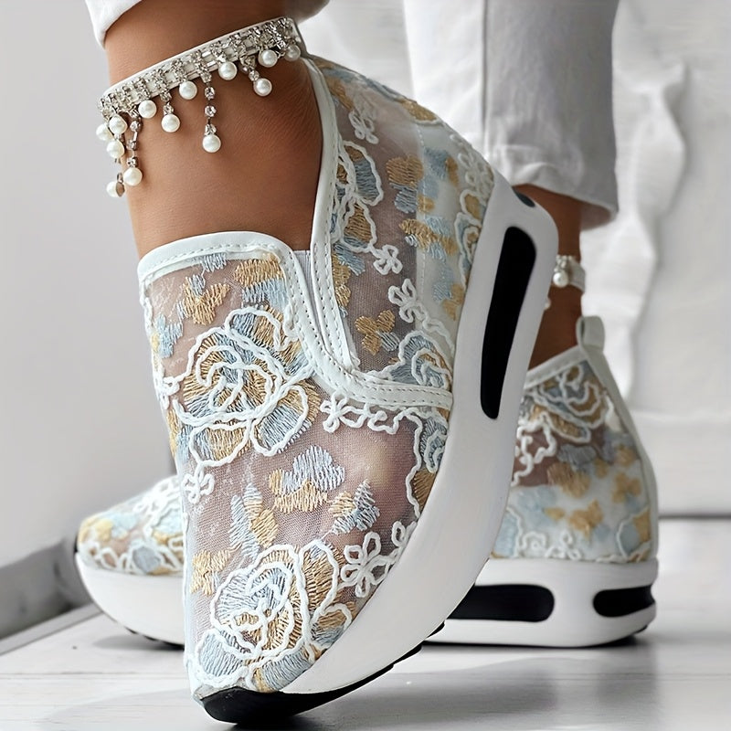 Andningsbara mesh-sneakers med blommönster – fotlänk ingår ej