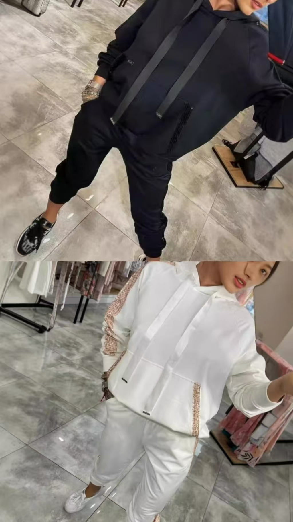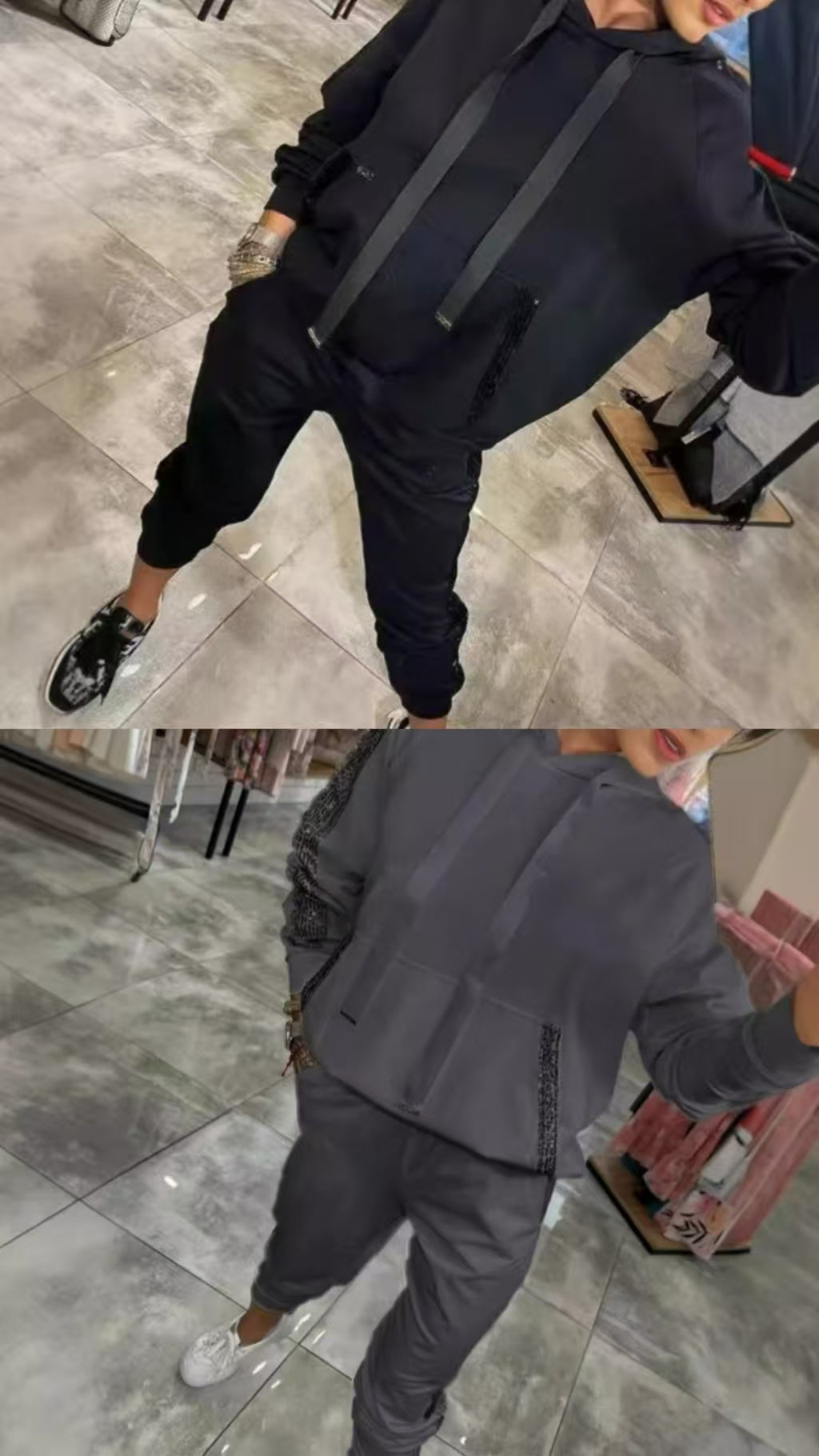 HUVA- OCH FICKDESIGN: Detta set har en populär huvadesign som förbättrar både funktionalitet och stil. Sidofickorna gör det enkelt att bära småsaker.