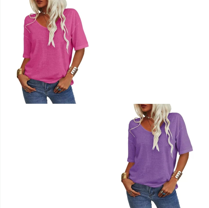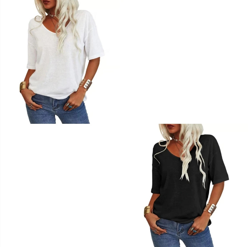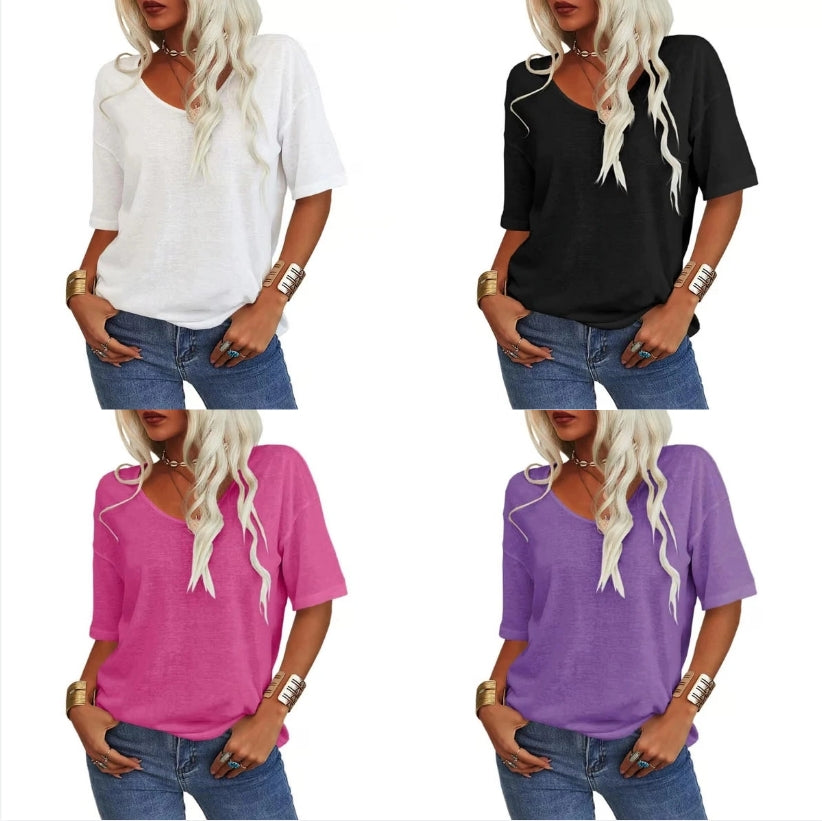 Sommar-t-shirttoppar, v-ringning, halvärmad, enfärgad, lös passform, enkel avslappnad stil och aldrig omodern.
